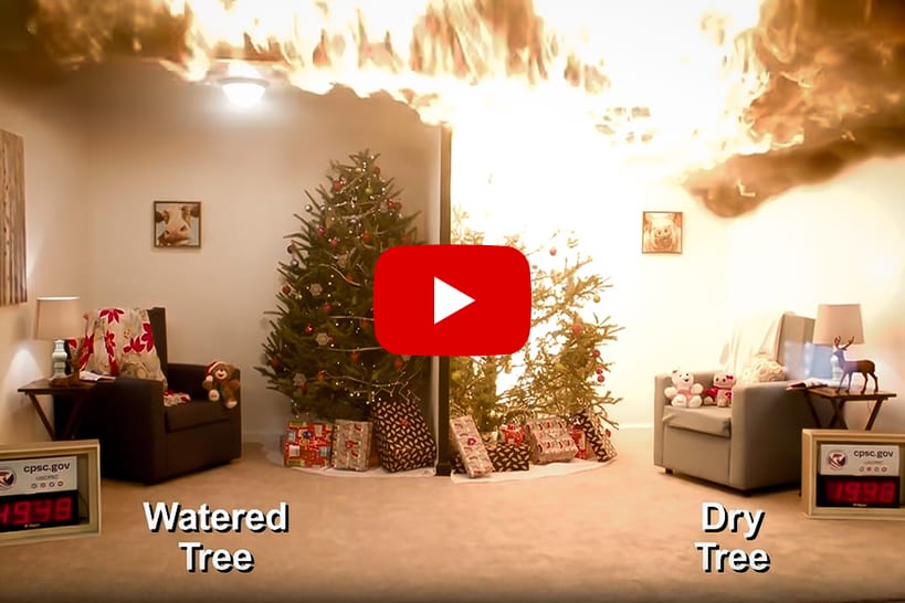 Watering the tree daily can’t be emphasized enough. Better yet, consider an artificial tree. If you must have a live tree, choose one with fresh green needles that don’t fall off when touched, and be sure to locate your tree at least three feet from any heat source. A dry tree can become an inferno in as little as 10 seconds, as demonstrated by the Consumer Product Safety Commission in the video to the right.