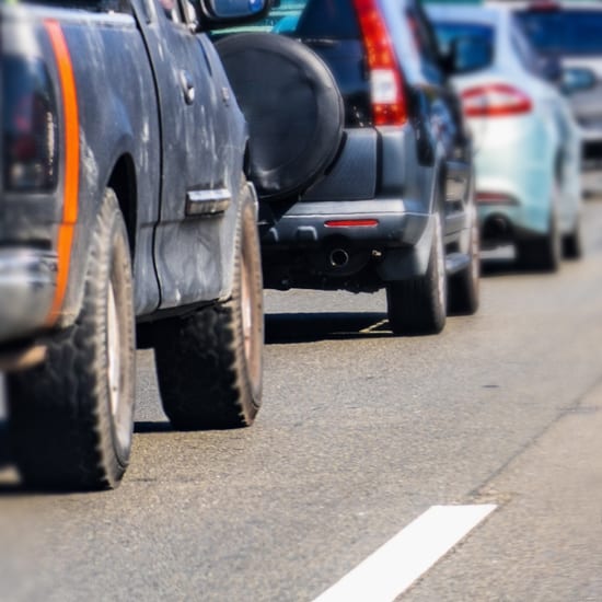 A row of cars queuing up behind a slow driver in the passing lane, Barbsimages / Shutterstock